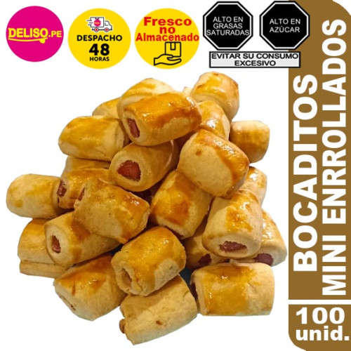 - 100 unidades de bocaditos Mini Enrollado de Hot Dog.